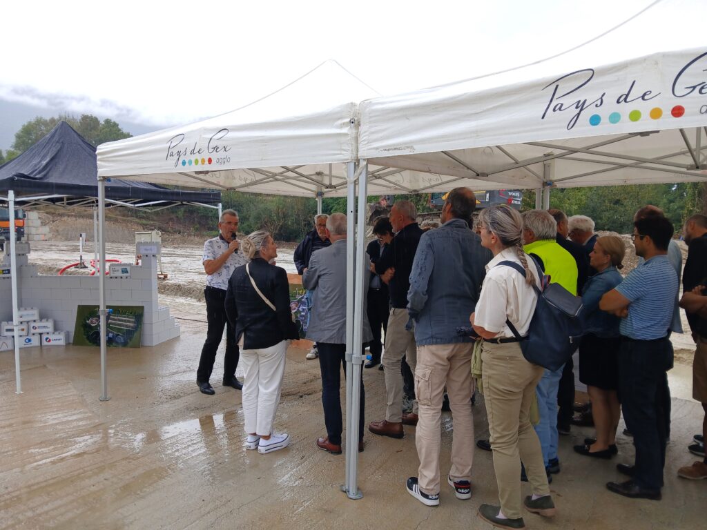 Ce chantier d’envergure a fait l’objet d’une cérémonie dite de « pose de première pierre » le jeudi 28/08/2025 en présence du Président de Pays de Gex Agglomération, du Président de la Régie des Eaux Gessiennes, des Membres du Conseil d’administration et du Comité technique de la Régie des Eaux Gessiennes, de Mme le Maire de Péron, de nombreux élus du territoire Gessien dont ceux des communes de Péron et Farges ainsi que des acteurs du chantier : Entreprises, équipes de maîtrise d’œuvre.
